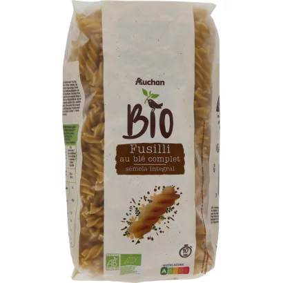 Auchan Favorite BIO fusilli, whole wheat durum dry pasta 500 g