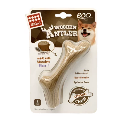 GiGwi Dog Chew Wooden Antler with natural wood and synthetic material S