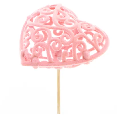 Heart Baroque 7cm on 50cm stick pink
