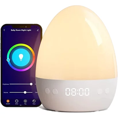 NITEBIRD LB2 Smart Wi-Fi-s gyerek éjjeli lámpa, szín és fényerő beállítás beépített zene, LED óra