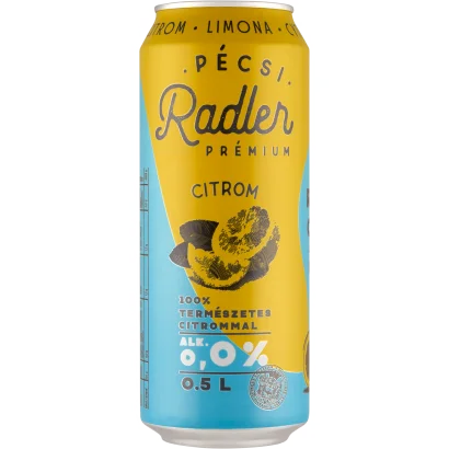Pécsi Radler Prémium Citrom Non-Alcoholic Light Beer & Lemon-Flavored Carbonated Soft Drink 0,5 l