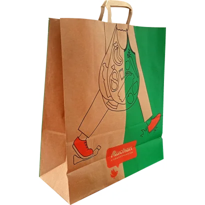 Printed paper bag with flat handles