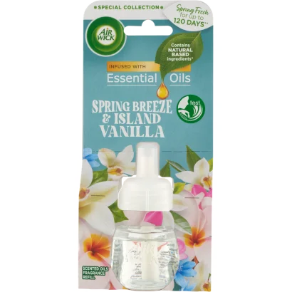 Air Wick Essential Oils Tavaszi szellő és vanília elektromos utántöltő légfrissítő készülékhez 19 ml
