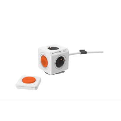 Allocacoc 1512/EUEXRM PowerCube Extended Remote hálózati elosztó szett 1.5m, 4 dugalj kapcsolóval fehér-narancssárga