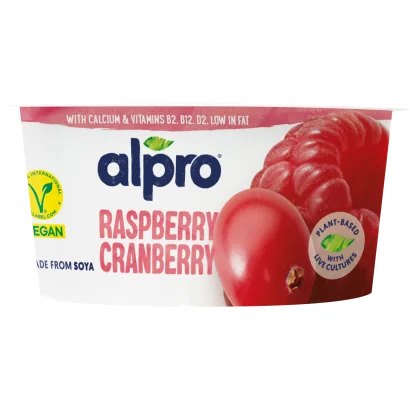 Alpro fermentált szójakészítmény, vörösáfonyás-málnás, hozzáadott kalciummal és vitaminokkal 150 g