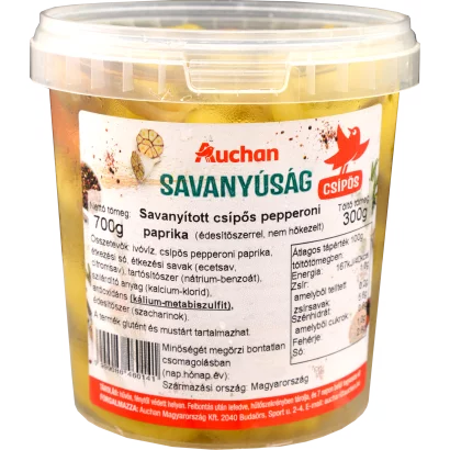 Auchan Kedvenc Savanyított Pepperoni paprika csípős vödrös 300 g