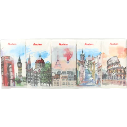 Auchan Kedvenc Travel Collection 4 rétegű papír zsebkendő 10 x 10 db/ csomag