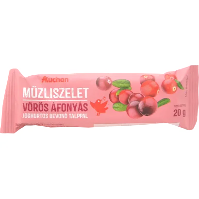 Auchan Kedvenc vörös áfonyás müzliszelet joghurtos bevonó talppal 20 g