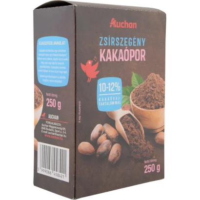 Auchan Kedvenc Zsírszegény kakaópor 10-12 % kakaóvaj tartalommal 250 g