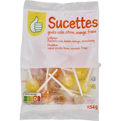 Auchan Tipp kóla, citrom, narancs, eper ízű nyalókák 154 g
