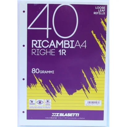 BLASETTI Pótbetét gyűrűskönyvbe, A4, 40 lap, vonalas, fehér
