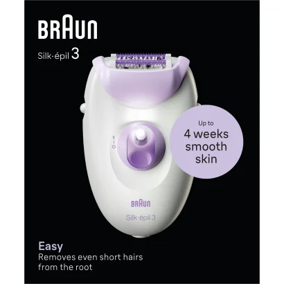 Braun Silk·épil 3, Vezetékes Epilátor Szőrtelenítéshez, Hetekig Tartó Sima Bőr, 3-000, Lila