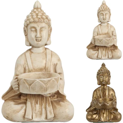 Buddha dekor mécsestartó 8,5x14 cm arany/fehér