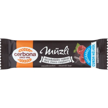 Cerbona étcsokoládés-málnás müzliszelet hozzáadott cukor nélkül, édesítőszerrel 20 g
