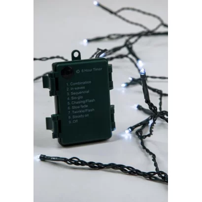 Elemes Fényfüzér, Kül és beltér, 192 Led, fehér, multifunciós, időzítővel, IP44, zöld kábel