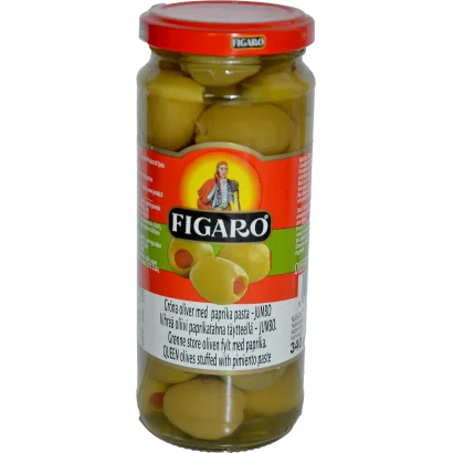 Figaro zöld QUEEN olívabogyó paprikakrémmel töltve JUMBO olívából - 340g/200g