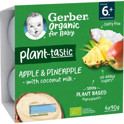 Gerber Organic kókusztej alapú mangó-kiwi ízű bio babadesszert 6 hónapos kortól 4 x 90 g (360 g)