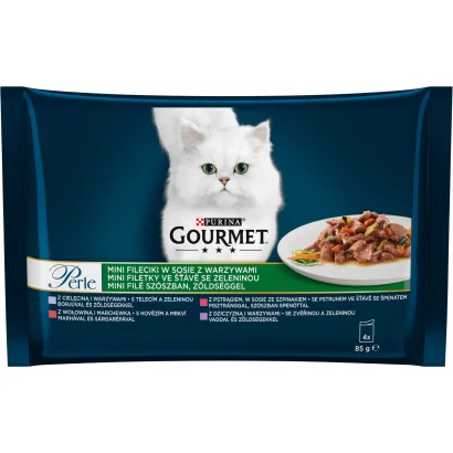Gourmet Perle Mini filé borjúval/vaddal/marhával/pisztránggal nedves macskaeledel 4 x 85 g