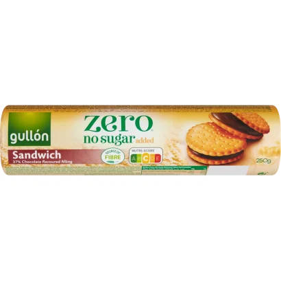 Gullón Zero csokoládé ízű krémmel töltött keksz, édesítőszerrel, hozzáadott cukor nélkül 250 g