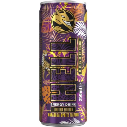 HELL őszibarack-, maracuja- és tuttifruttiízű, koffeintartalmú, szénsavas, alkoholmentes ital 250 ml