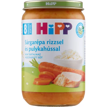 HiPP BIO sárgarépa rizzsel és pulykahússal bébiétel 8 hónapos kortól 220 g