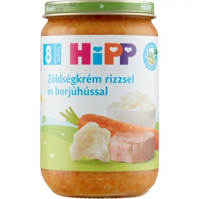 HiPP BIO zöldségkrém rizzsel és borjúhússal bébiétel 8 hónapos kortól 220 g