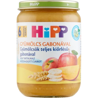 HiPP Gyümölcs Gabonával BIO gyümölcsök teljes kiőrlésű gabonával bébidesszert 6 hónapos kortól 190 g