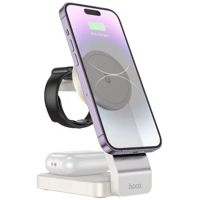 Hoco CQ3 Motorcycle összecsukható 3 az 1-ben mágneses vezeték nélküli gyorstöltő 15W fehér