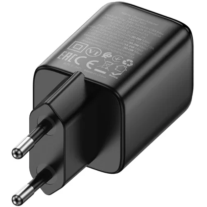 Hoco N53 Monsoon USB-C TÖLTŐ 30W + USB-A QC3.0 18W - (EU) FEKETE