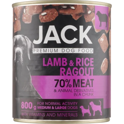 Jack teljes értékű eledel felnőtt kutyák minden fajtája számára bárányhússal és rizzsel 800 g