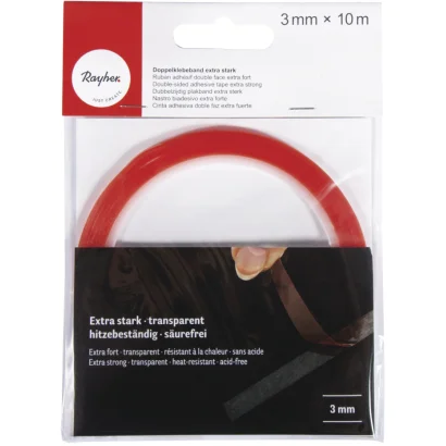 Kétoldalas ragasztószalag, extra erős, 3 mm, átlátszó, 10 m