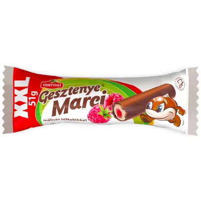 Maroni Gesztenye Marci gesztenyerúd kakaós bevonómasszával mártva málnás töltelékkel 51 g