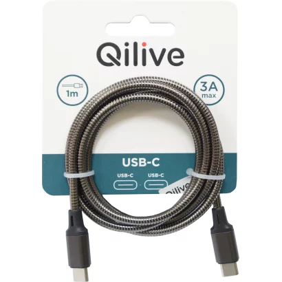 Qilive 600166078 USB-C/USB-C kábel metál fekete, 3A, 1 m
