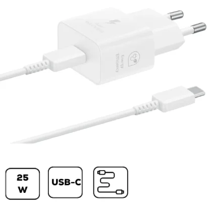 Samsung hálózati adapter kábellel, 25W, fehér